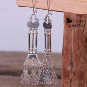 Delicada pieza de platería mapuche, totalmente elaborada y pulida a mano. con figuras de aves y copihues planos. La gracia de esta y otras piezas de platería mapuche, es que combina con cualquier color y prenda, agregando un toque de sencilla elegancia.