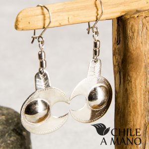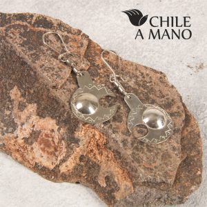 Aros con forma de clava Mapuche confeccionados en plata y con delicados grabados.