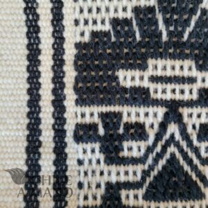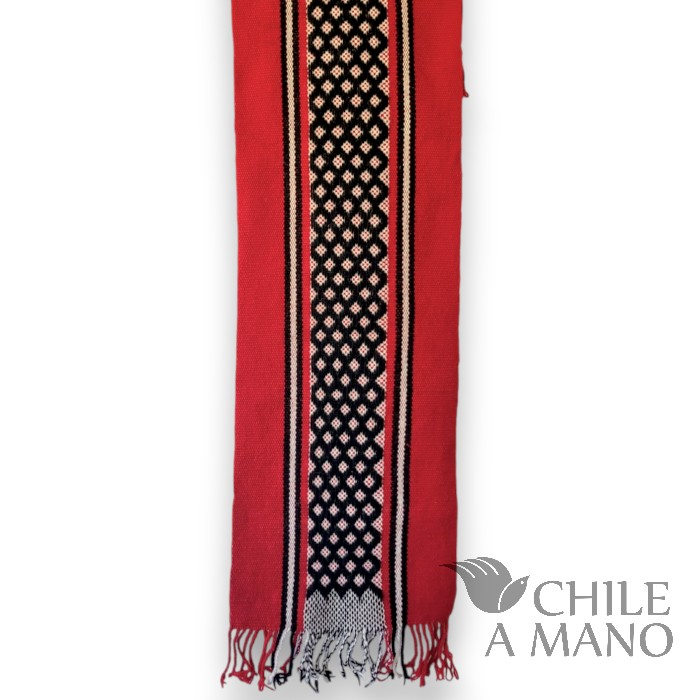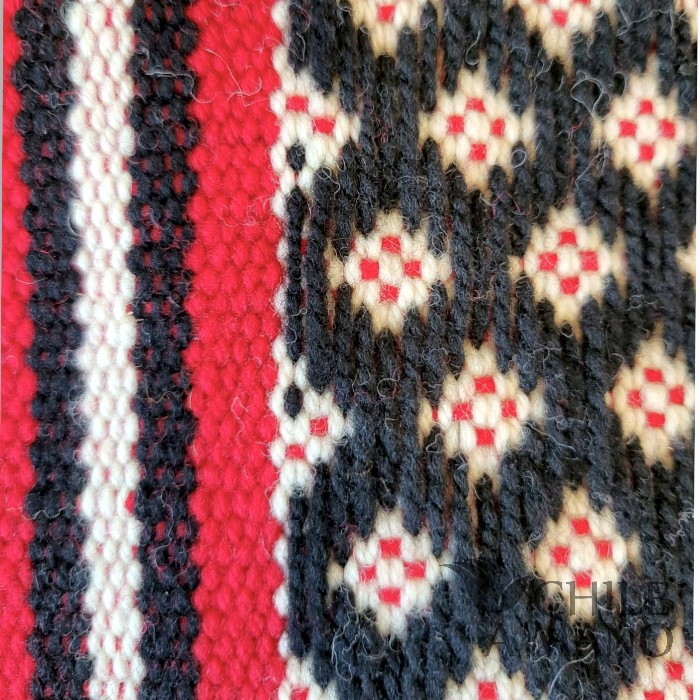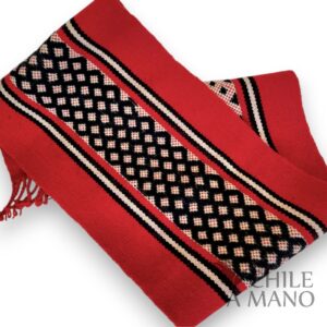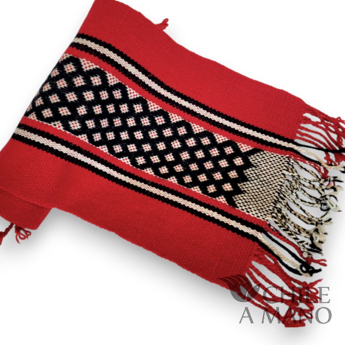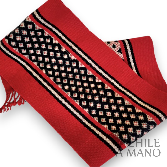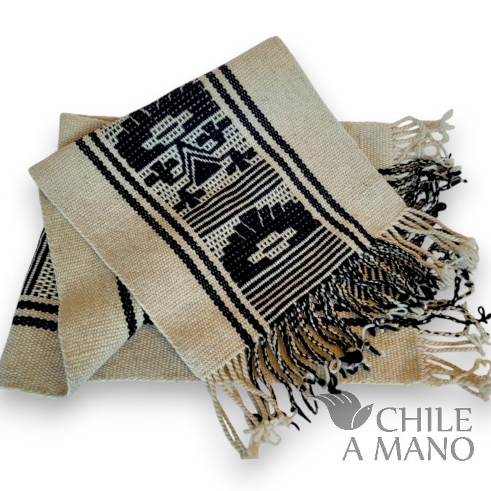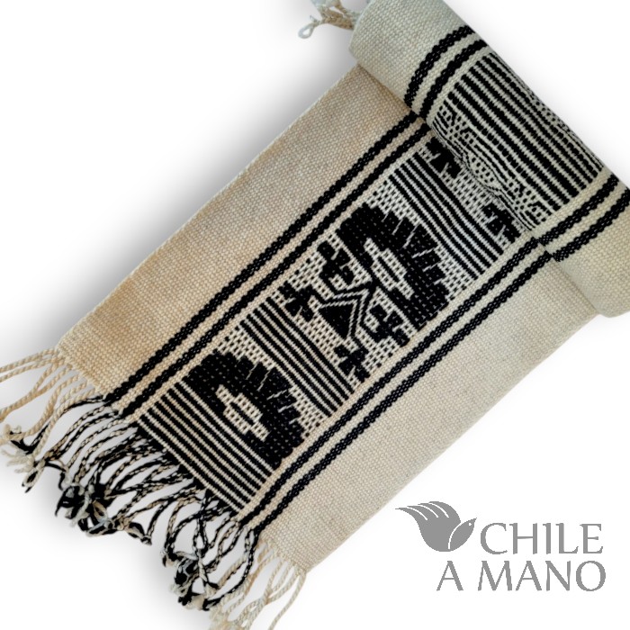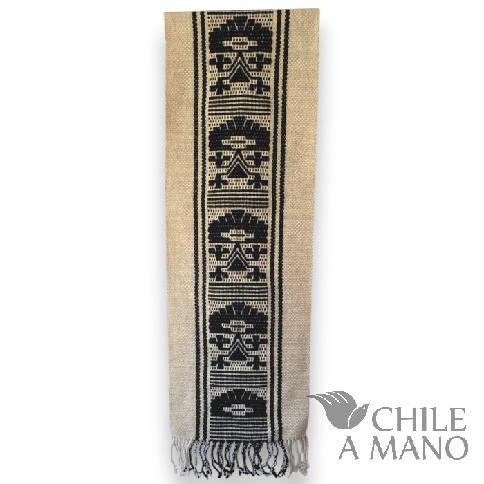 Con su presencia cálida y llena de simbolismo, este camino de mesa destaca por sus iconografías geométricas y por la perfección en el hilado: lana finamente torcida a mano, siguiendo una de las tradiciones más representativas de la cultura Mapuche.