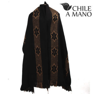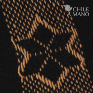 Telar Mapuche negro y óxido con iconografía