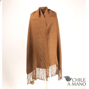 Este chal en lana de alpaca natural, sin fibras añadidas, es confeccionado en un telar de dos pedales, un tipo de telar que si bien no es originario Aymara, fue tempranamente adoptado. Suave, delicado y versátil, puede bien servir como fina manta para las tardes de verano, de echarpe en el invierno y piecera para la cama.
