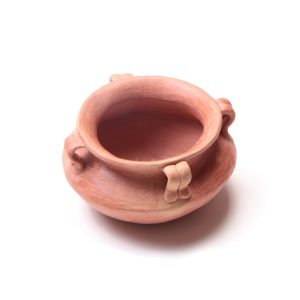 Reproducción de  un cuenco con asas y decoración de uso utilitario propio de la cerámica prehispánica tardía de la región de Tarapacá, de la zona de Alto Ramírez. Confeccionado en arcillas de la zona de la Huayca, destacan sus bellas lineas simples de aire contemporáneo.