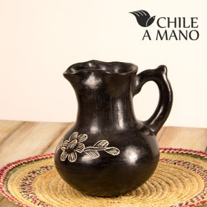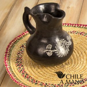 Mucho más que un jarro para llevar a la mesa, una pieza que cautiva por su belleza rústica y elegante, cuidadosamente bruñido y con delicados dibujos esgrafiados y pintados que dan el sello a esta especial tipo de greda. Sirve para uso utilitario o decorativo.