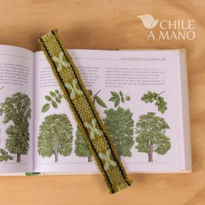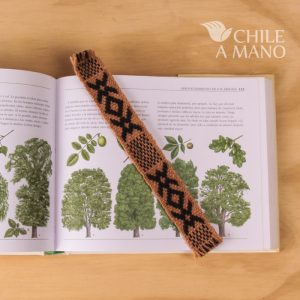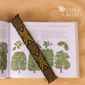 Bonito marcador de libros confeccionado en telar con iconografías Mapuche. Regalo perfecto para el o la lectora de la casa.