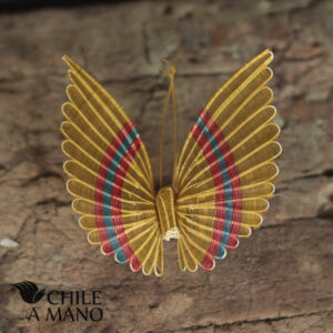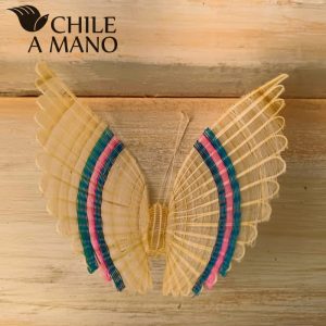 Este es un icono de la artesanía en crin de Rari. Mariposas tejidas en crines teñidas. Para usar como un osado prendedor o posada sobre las cortinas para dar un toque de color.