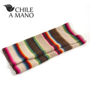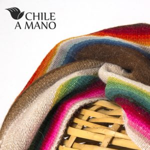 Esta es otra de nuestras maravillosas piezas únicas. El telar de cuatro estacas se ubica en el piso y permite tejer piezas de tamaños diversos. Las mujeres mayores son las que mayoritariamente dominan la técnica, que implica pasar largos ratos sentados en el piso. El resultado es un telar tupido, tejido con doble hebra lana torcida para que no se corte. Esta pieza es una tradicional Ikiña, que se utilizaba como frazada para cama, unida a otra igual, que es su par. Ambas piezas se unen en el centro con un tejido que es como un camino y se llama Kjile. Esta piecera está tejida con lana de Alpaca teñida a mano por la propia artesana tejedora.