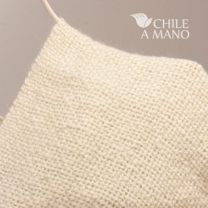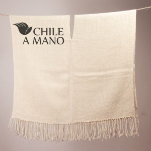 Bello poncho para mujer tejido a telar en lana de oveja en color natural blanco.