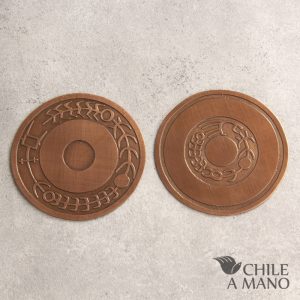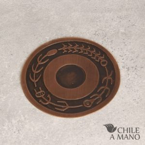 Sin duda el cobre el metal por excelencia que habla de Chile y sus minerales. Pero más allá del metal o la materia prima, el cobre es también el soporte ideal para la expresión de los artesanos orfebres, que en cada una de sus piezas van plasmando un verdadero relato, como este juego de 4 posavasos con grabados al aguafuerte, con diseños de petroglifos del Alto Cachapoal. Dibujos grabados en piedra por artesanos ancestros hace siglos, y que hoy artesanos contemporáneos, a modo de legado llevan estos diseños a piezas delicadas, bellas, y con pertinencia cultural.
