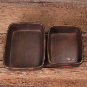 Un practico set de dos fuentes en bonita greda de pomaire ahumada. Sirve para preparar budines, soufles, lasgnas y en dos tamaños. Ideal si quieres reservar una parte para mas tarde o cuando tenemos una preparación con dos complementos. Presentación rustica pero linda para regalo, en caja de cartón ad hoc con material blando en su interior.