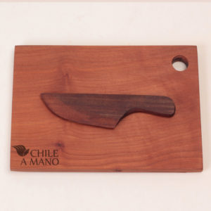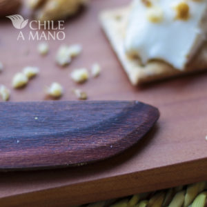 El cuchillo de alerce y la tabla de raulí llevan una capa protectora de cera de abeja.