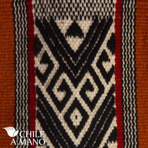 La iconografía sobre el tejido a telar es una de las expresiones más representativas de la cultura Mapuche, inconfundible por el contraste de colores y la perfección en el hilado de la lana finamente torcida a mano.