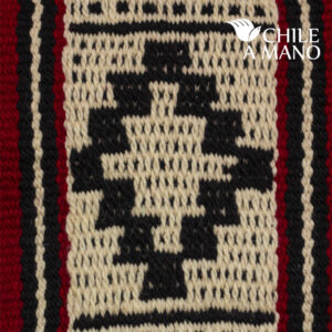 La iconografía sobre el tejido a telar es una de las expresiones más representativas de la cultura Mapuche, inconfundible por el contraste de colores y la perfección en el hilado de la lana finamente torcida a mano.