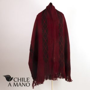 Telar Mapuche rojo oscuro y negro con Iconografía