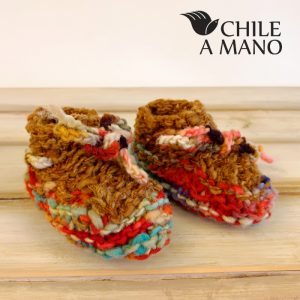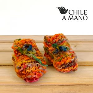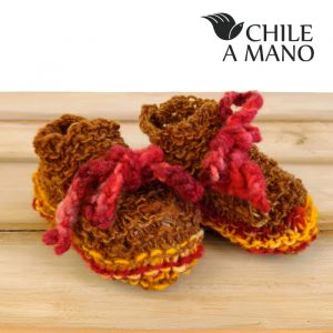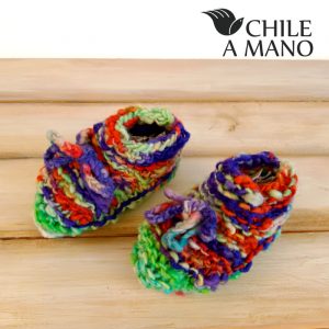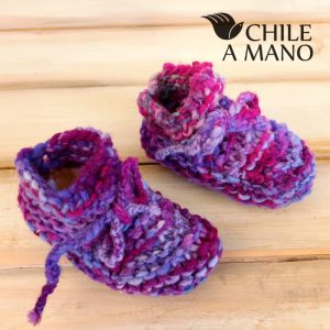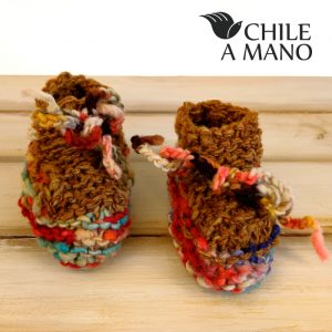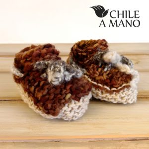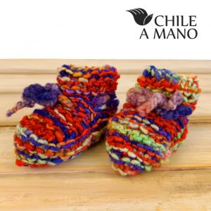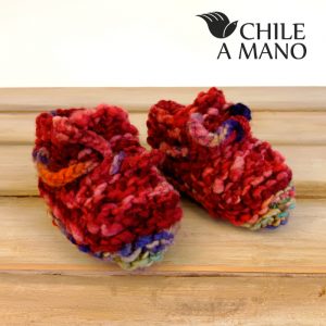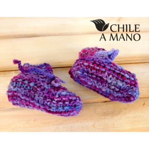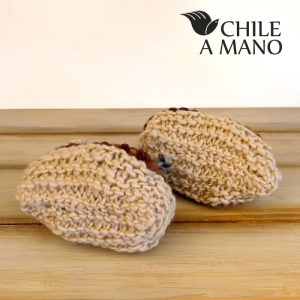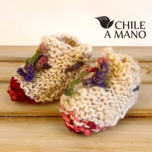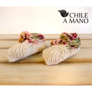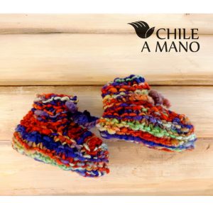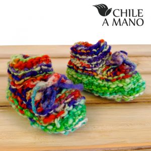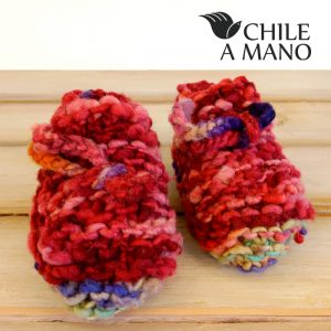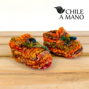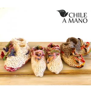 Desde la Isla Grande de Chiloé, llegan estos zapatitos o pantuflas para guaguas de 12 meses, tejidos en noble lana de oveja en colores naturales y teñidos.